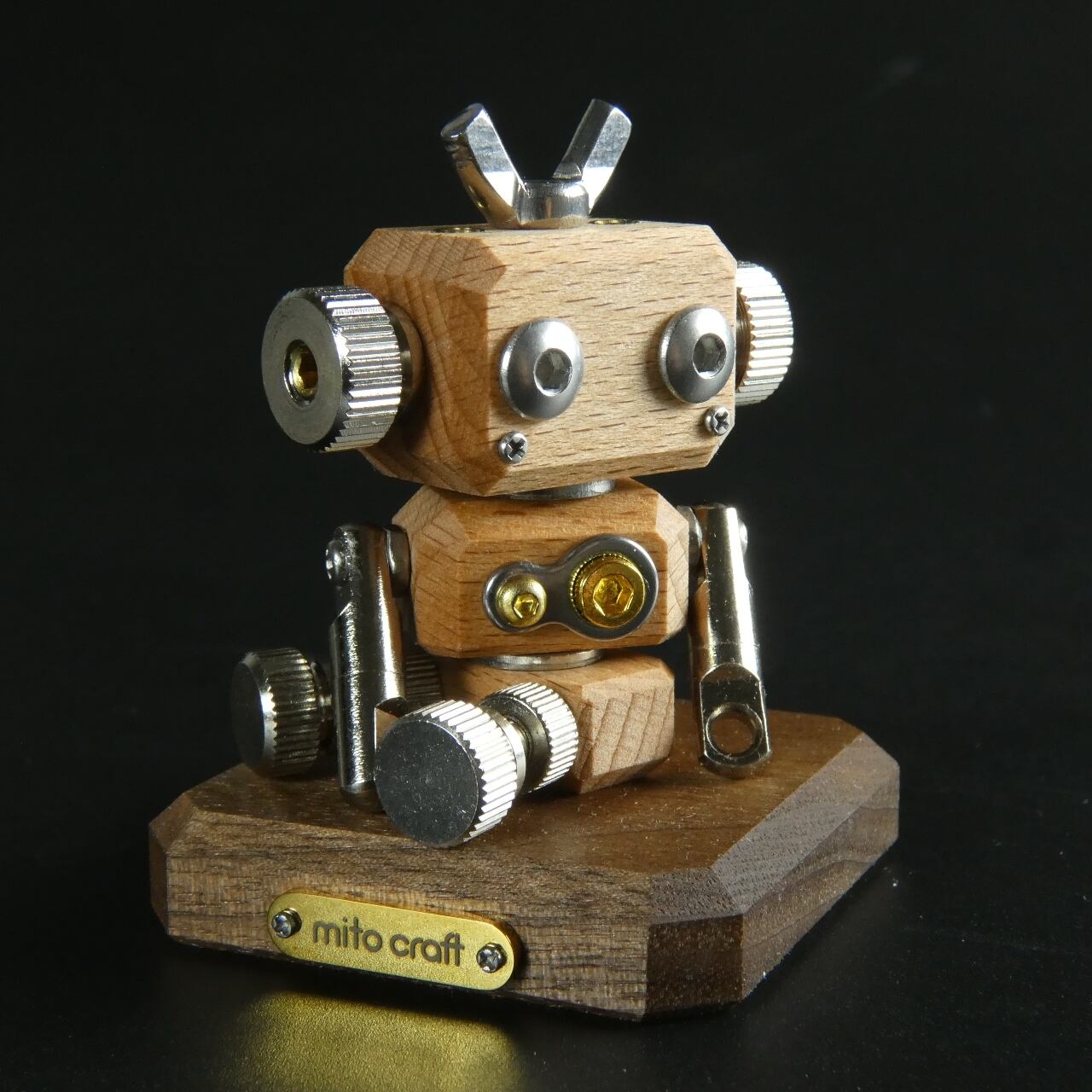 ・木材やレジン等の素材と金属パーツを組み合わせたロボットモチーフのフィギュアです。