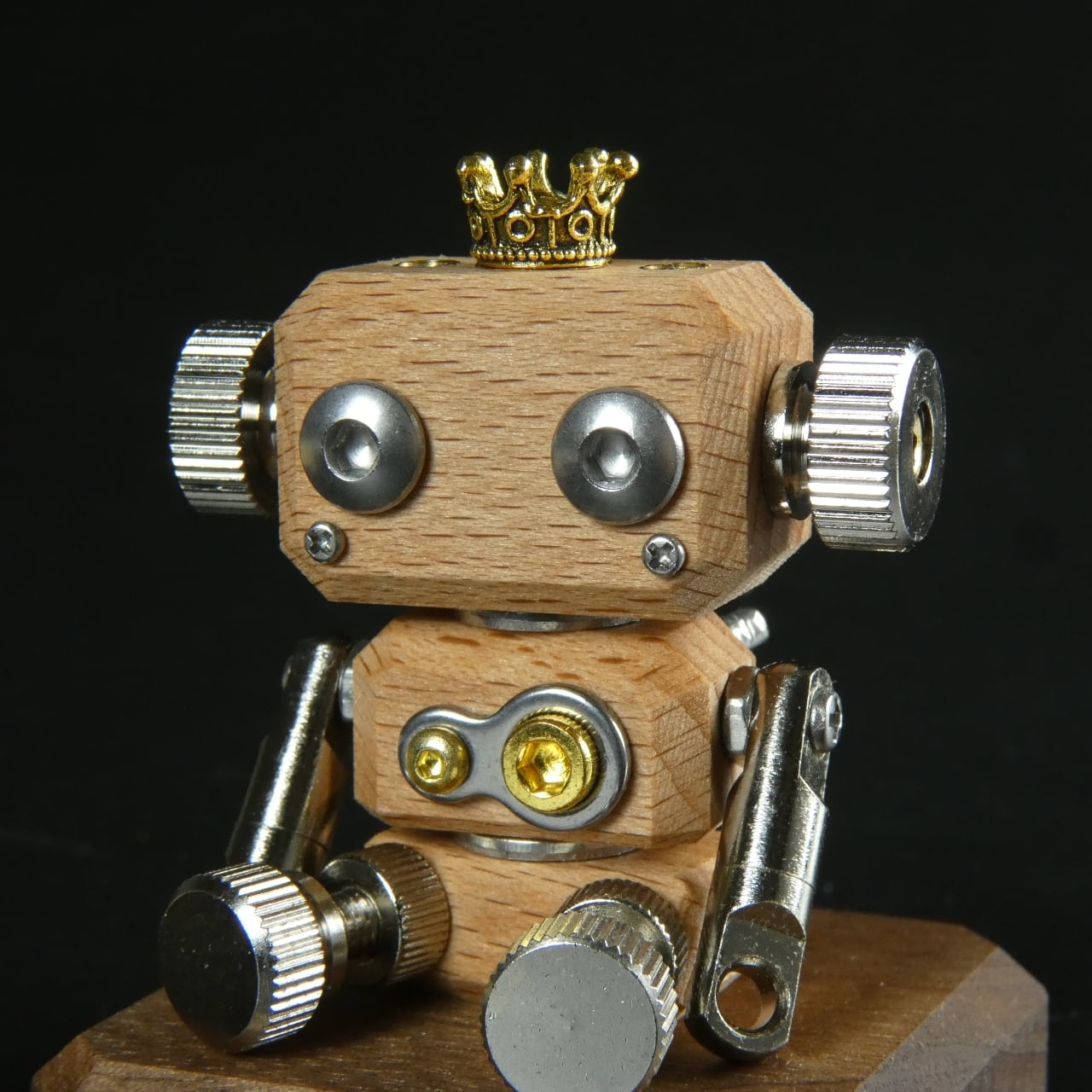 ・木材やレジン等の素材と金属パーツを組み合わせたロボットモチーフのフィギュアです。