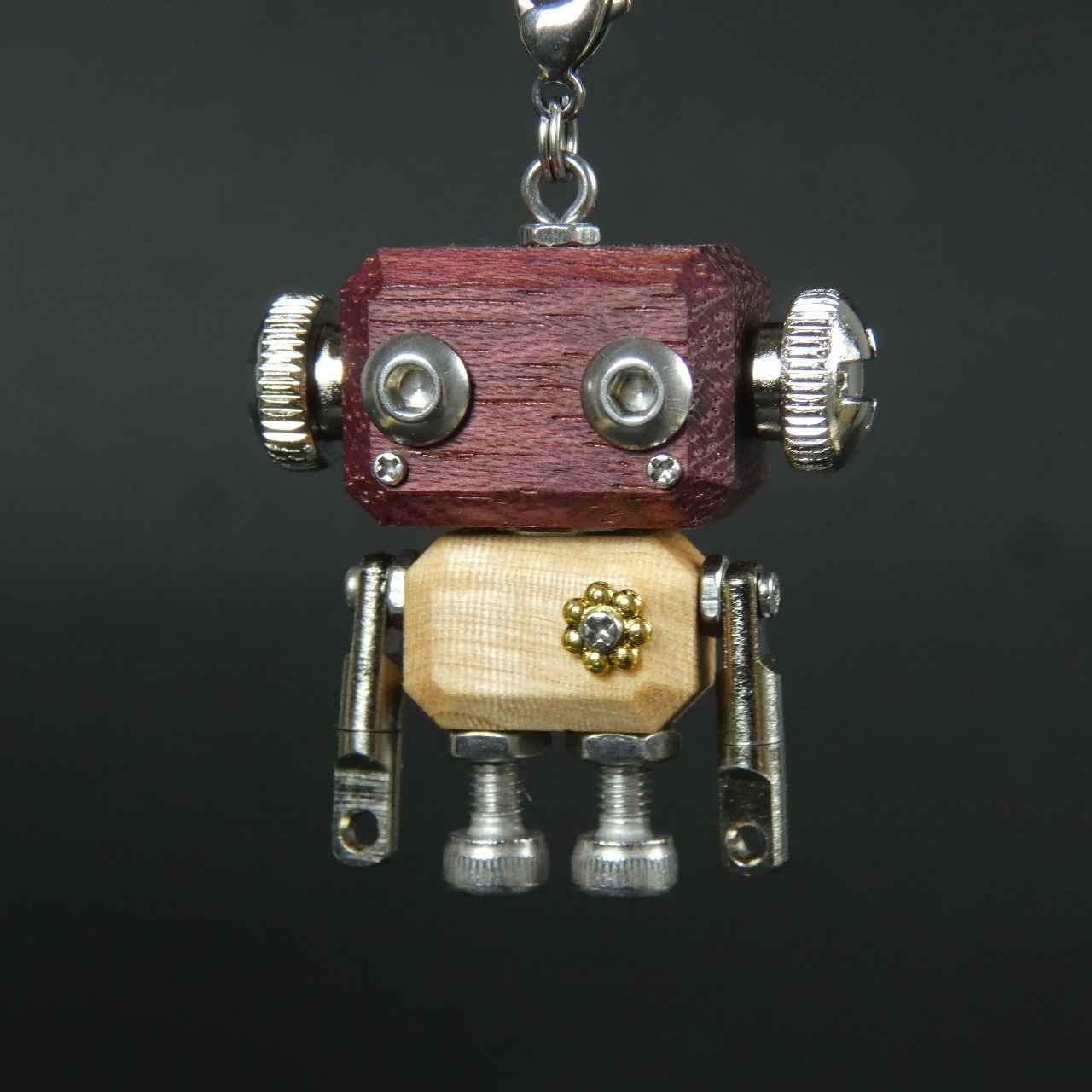 ・木材やレジン等の素材と金属パーツを組み合わせたロボットモチーフのキーホルダーチャームです。