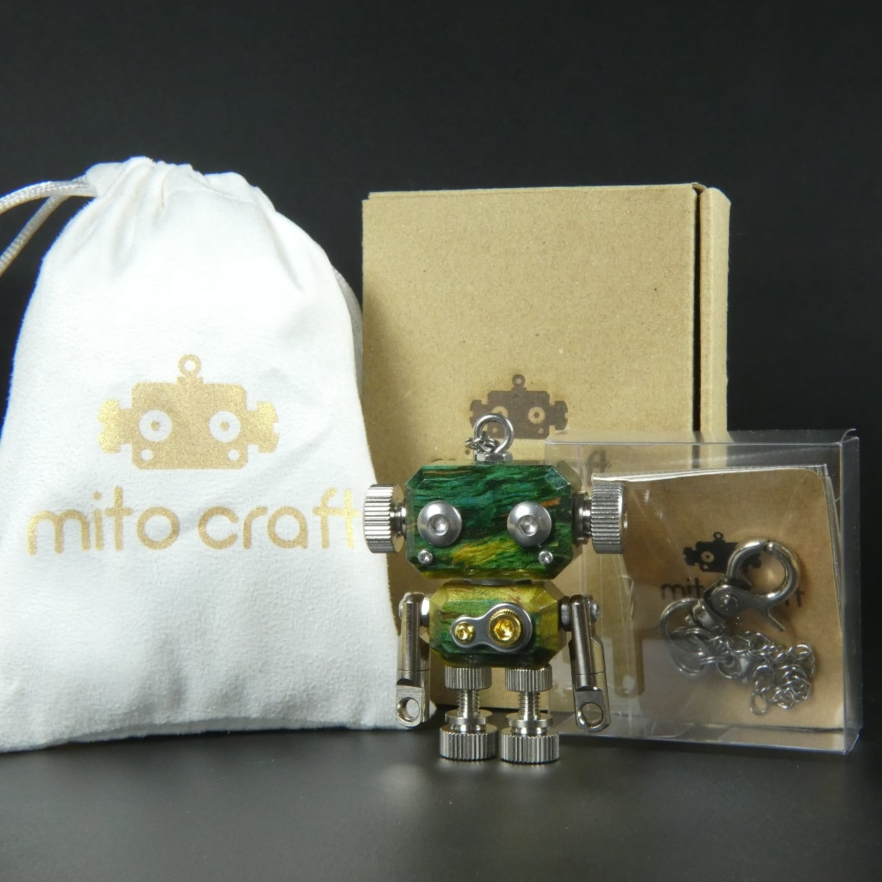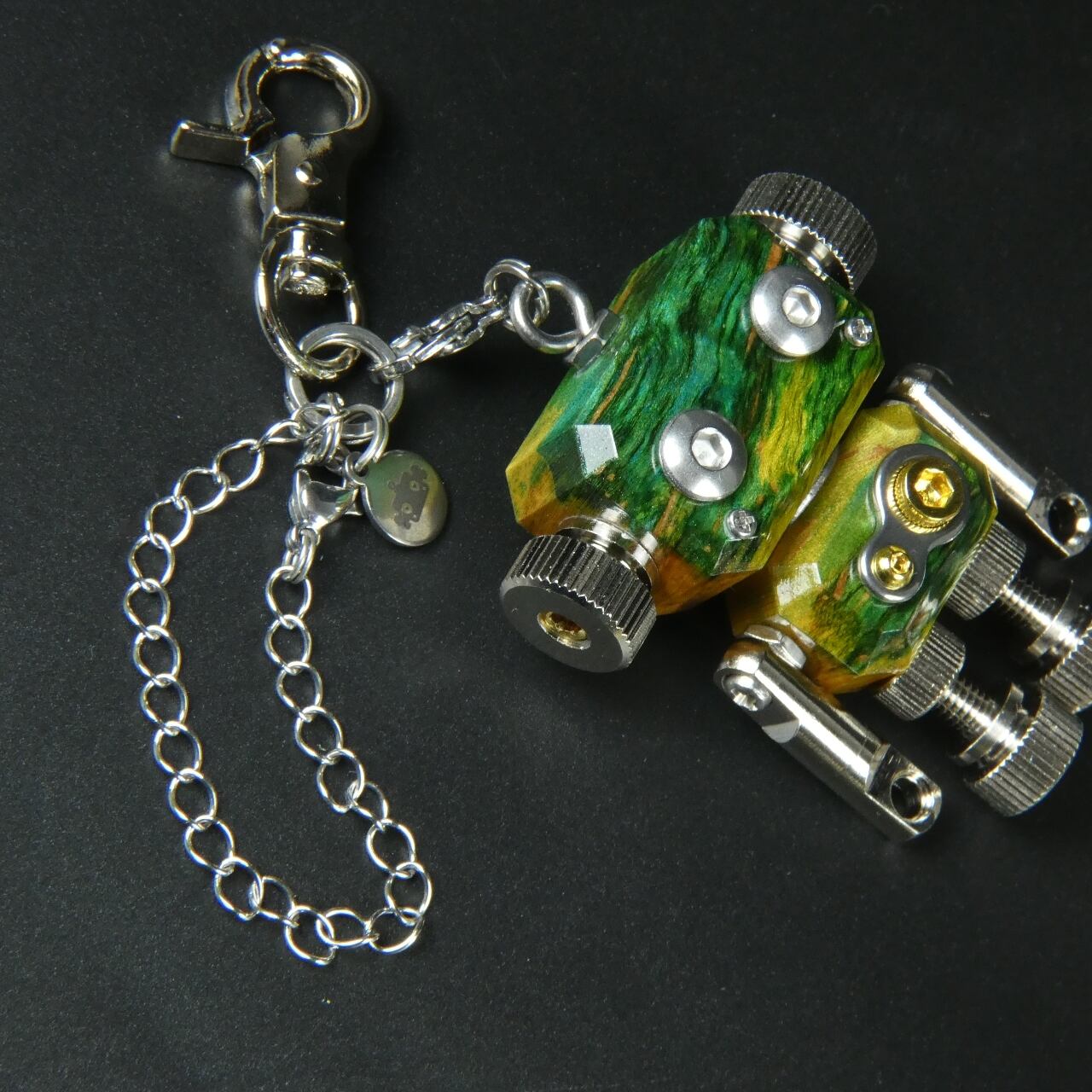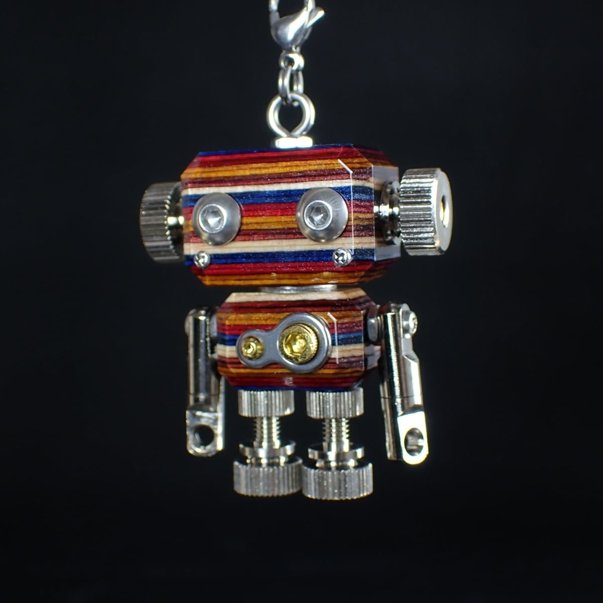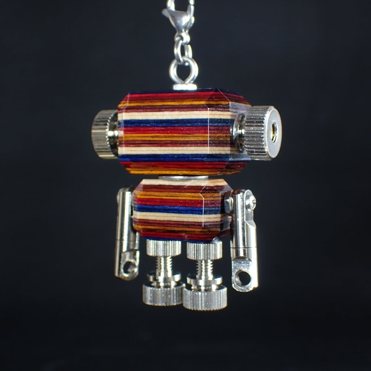 ・木材やレジン等の素材と金属パーツを組み合わせたロボットモチーフのキーホルダーチャームです。