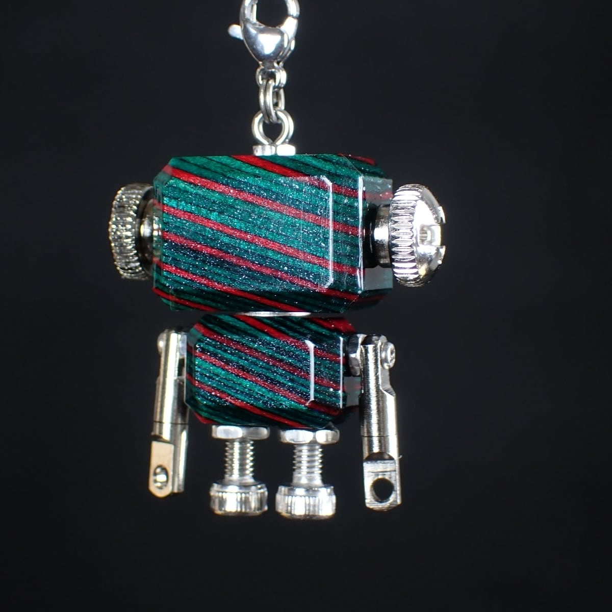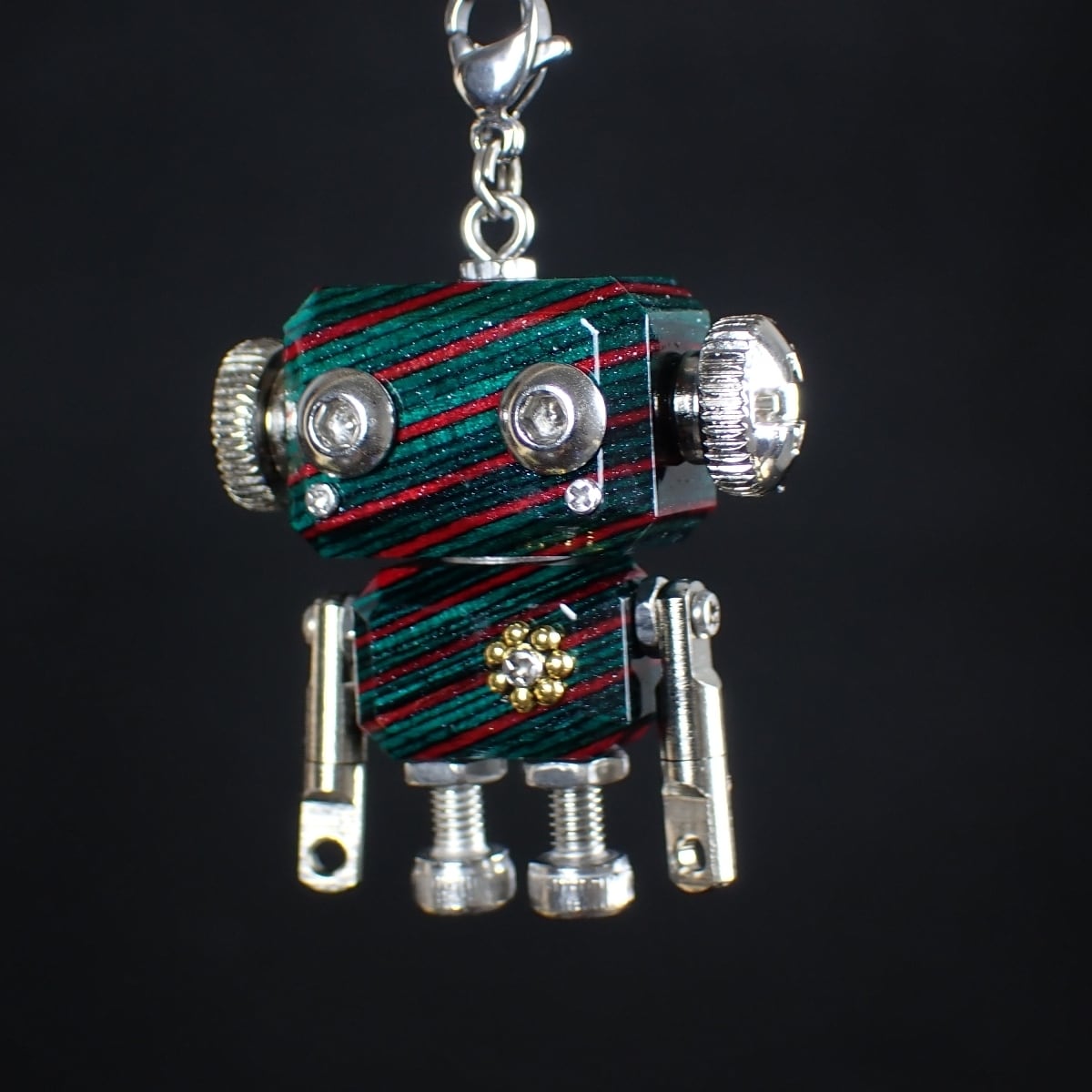 ・木材やレジン等の素材と金属パーツを組み合わせたロボットモチーフのキーホルダーチャームです。