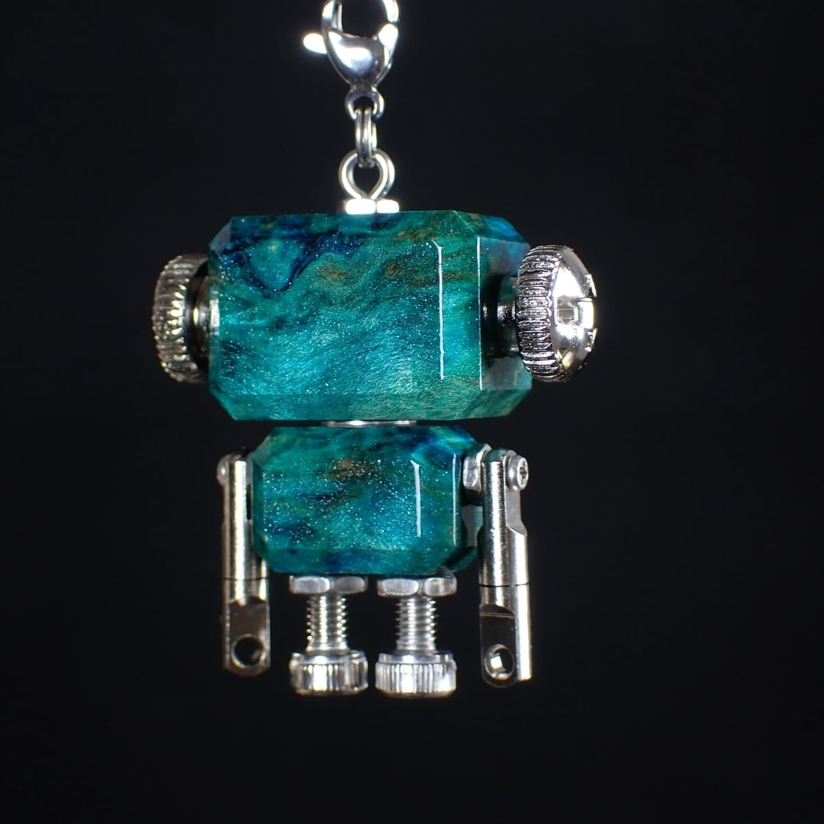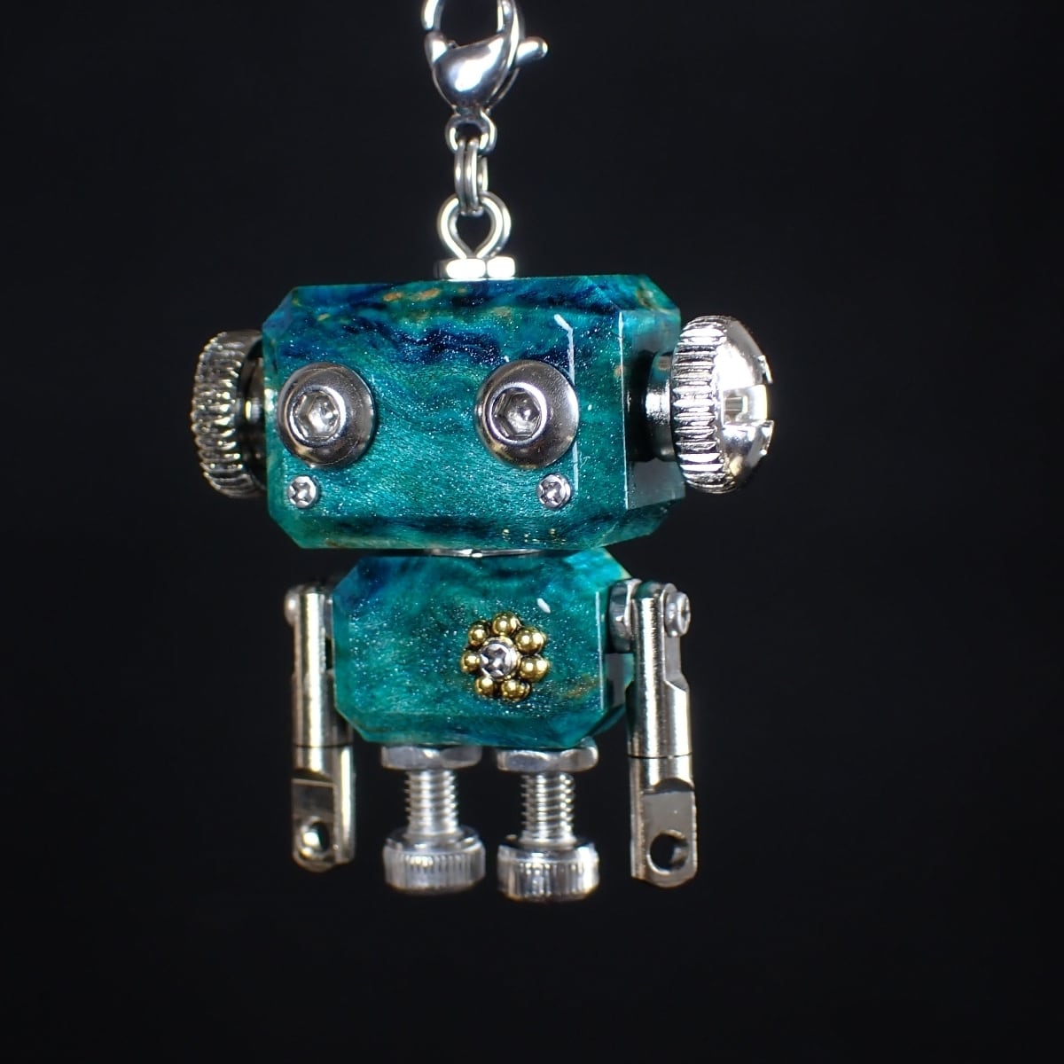 ・木材やレジン等の素材と金属パーツを組み合わせたロボットモチーフのキーホルダーチャームです。