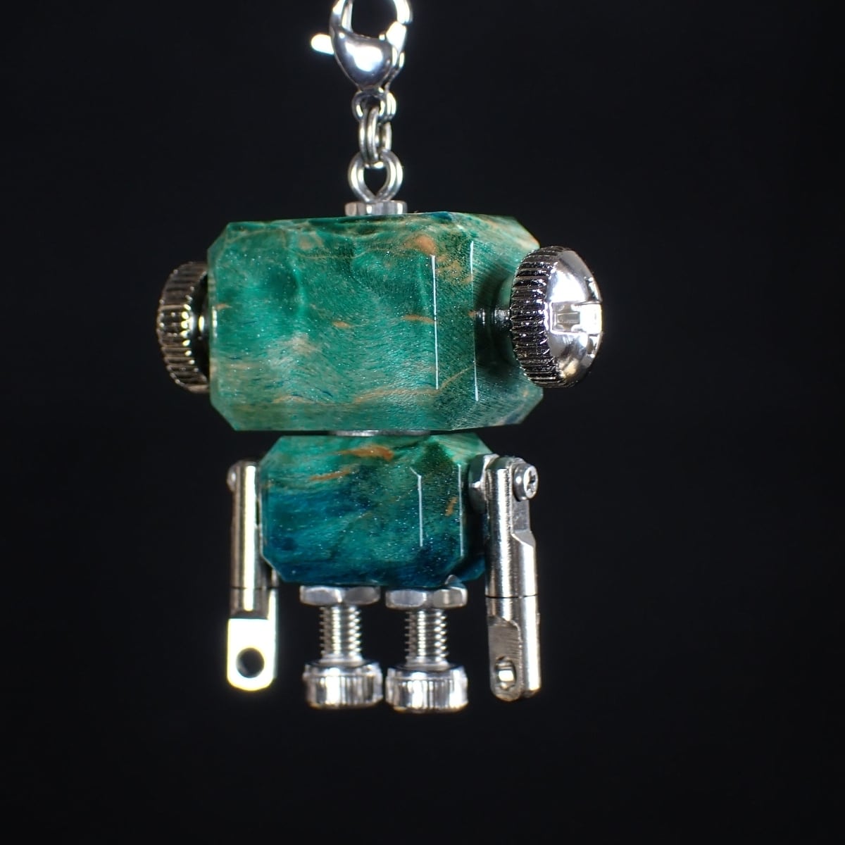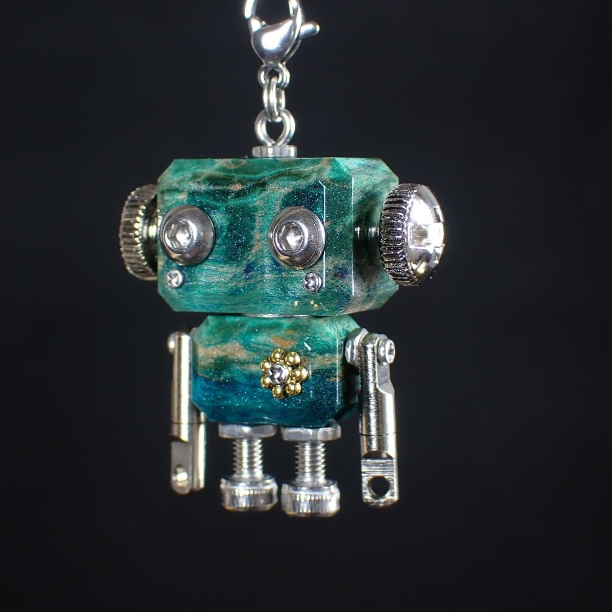 ・木材やレジン等の素材と金属パーツを組み合わせたロボットモチーフのキーホルダーチャームです。