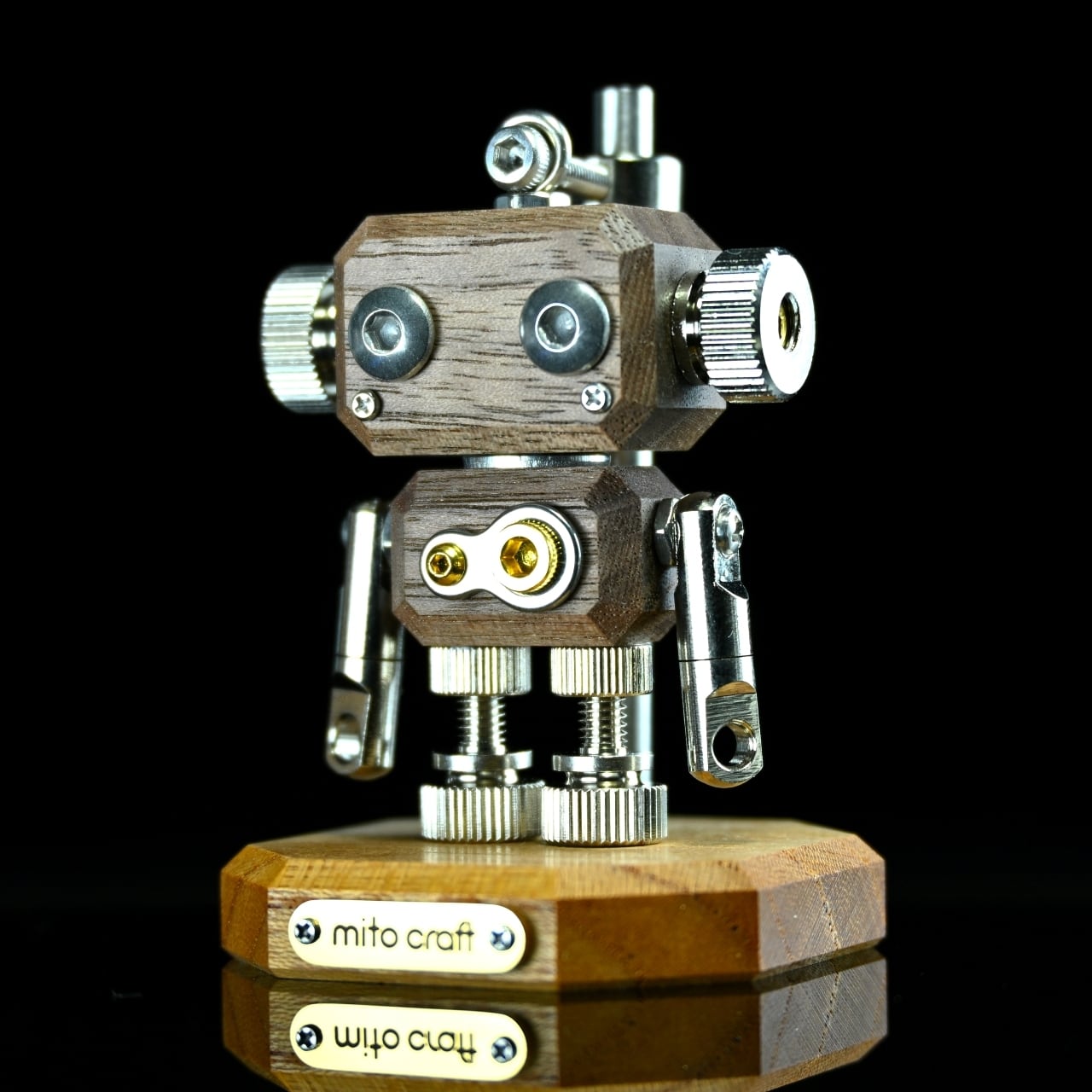 ・木材やレジン等の素材と金属パーツを組み合わせたロボットモチーフのキーホルダーチャームです。