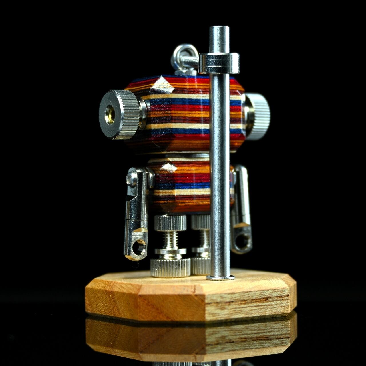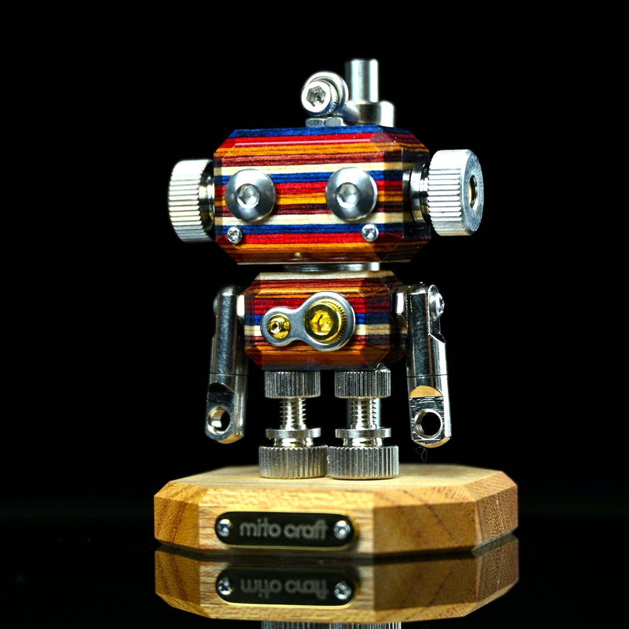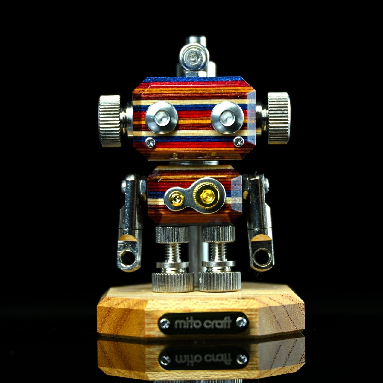 ・木材やレジン等の素材と金属パーツを組み合わせたロボットモチーフのキーホルダーチャームです。