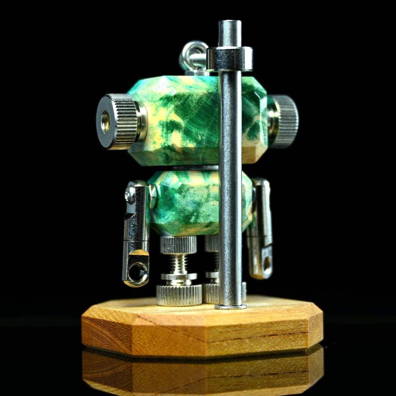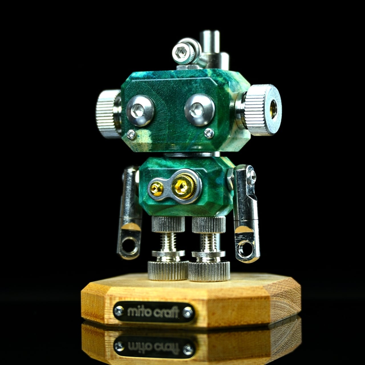・木材やレジン等の素材と金属パーツを組み合わせたロボットモチーフのキーホルダーチャームです。