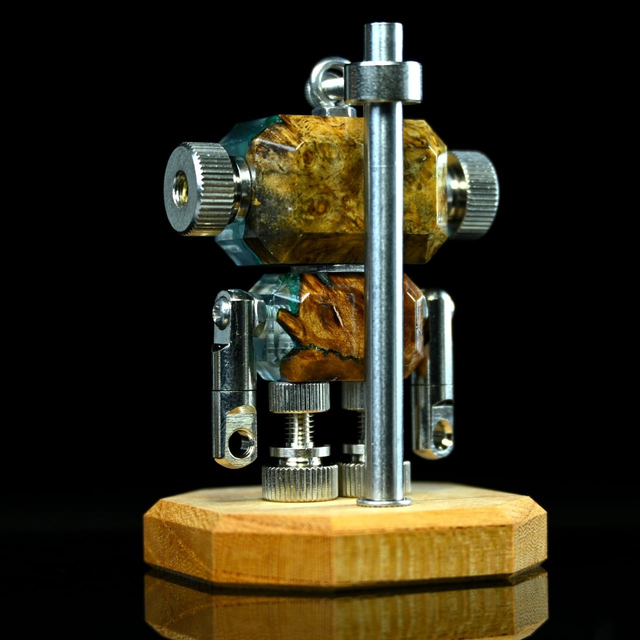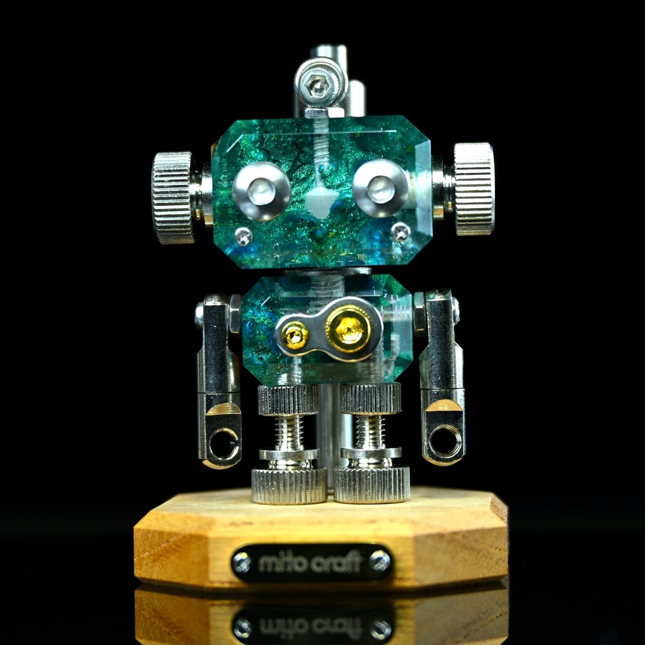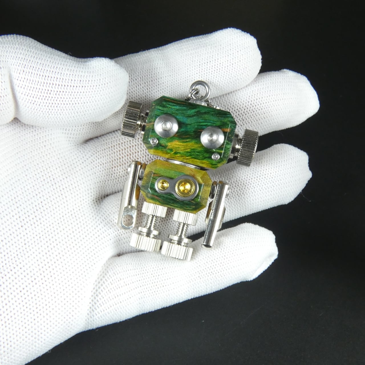 ・木材やレジン等の素材と金属パーツを組み合わせたロボットモチーフのキーホルダーチャームです。