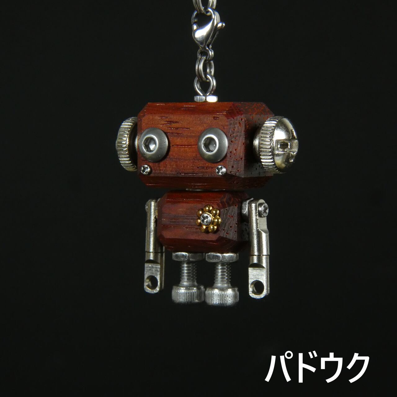 ・木材やレジン等の素材と金属パーツを組み合わせたロボットモチーフのキーホルダーチャームです。